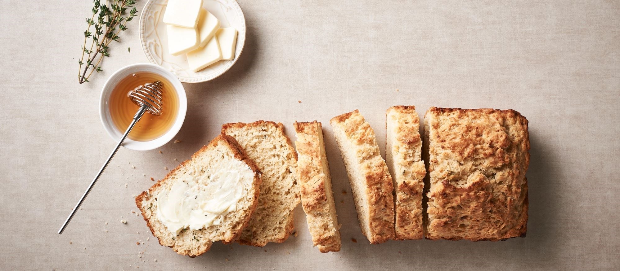Ready to serve in just over an hour, this savory quick bread is an easy addition to your baking repertoire. The garlic, Parmesan cheese, and rosemary can all be substituted for other add-ins, and different varieties of beer will provide distinct flavor and color.