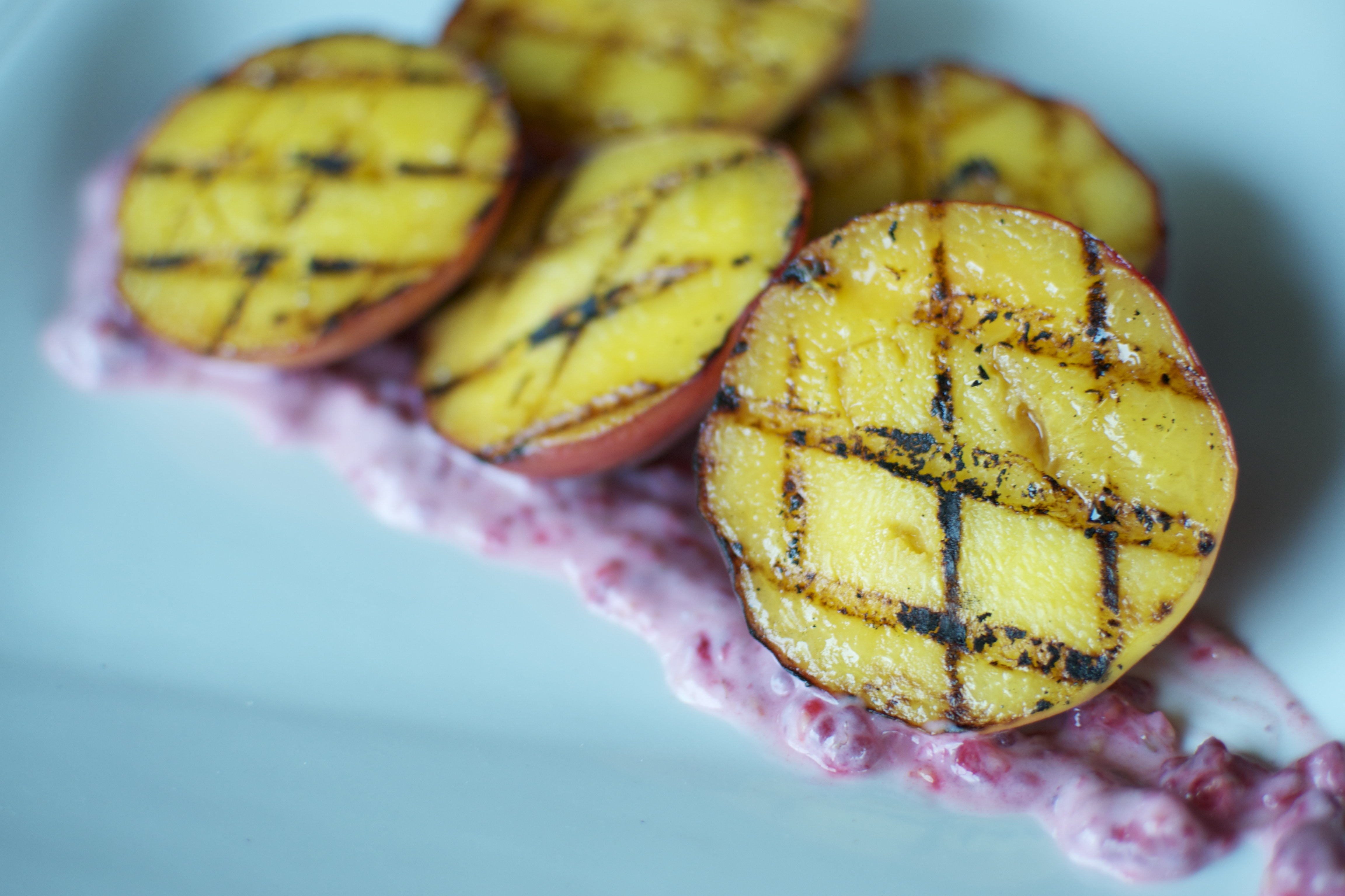 Grilled Peaches with Raspberry-Infused Yogurt