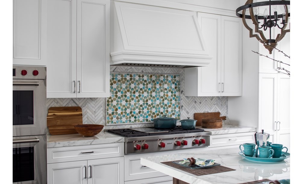 Mediterranean style kitchen featuring Wolf 36-inch induction cooktop