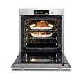 - Interior includes rack guides featuring three full-extension rack positions and one standard rack position; the oven comes with two standard racks and broiler pan with rack