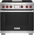 - Exprimez votre style en personnalisant les couleurs et les finitions de la porte de votre cuisinière Wolf à double combustible. Optez pour le classique acier inoxydable ou optez pour un nouveau revêtement en poudre noir ou blanc.