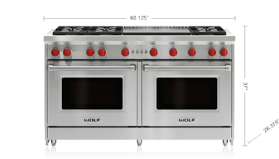 Cuisinière au gaz de 60 po - 6 brûleurs et plaque de cuisson double à infrarouge