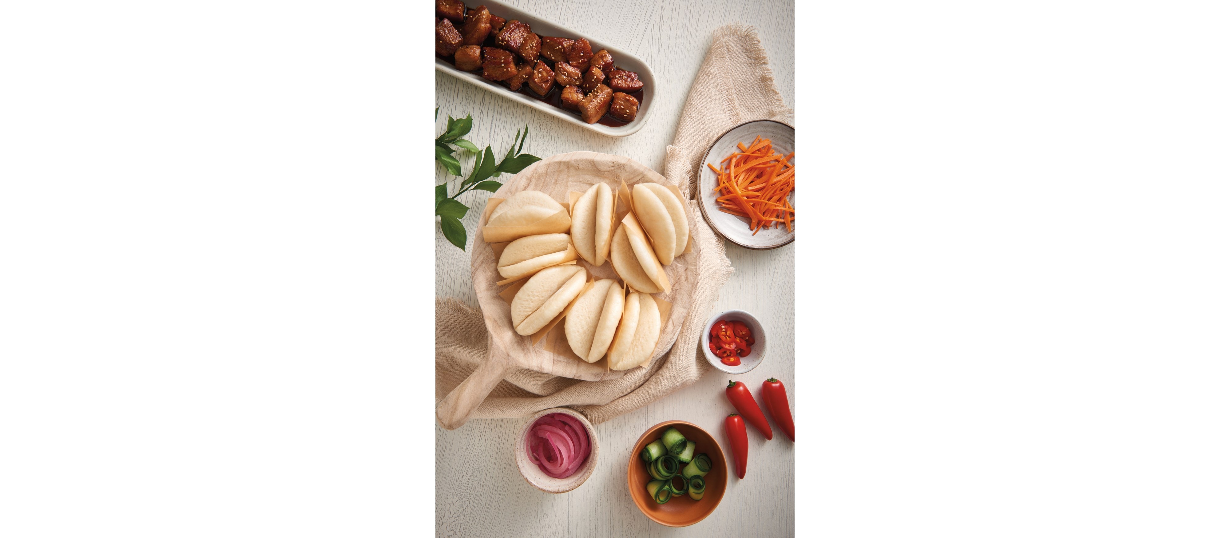 These delicate, pillowy buns are easy to prepare and quick to bake. Let your imagination—or refrigerator contents—inspire an endless number of exciting fillings: pork belly, tofu, mushrooms, even fried chicken.