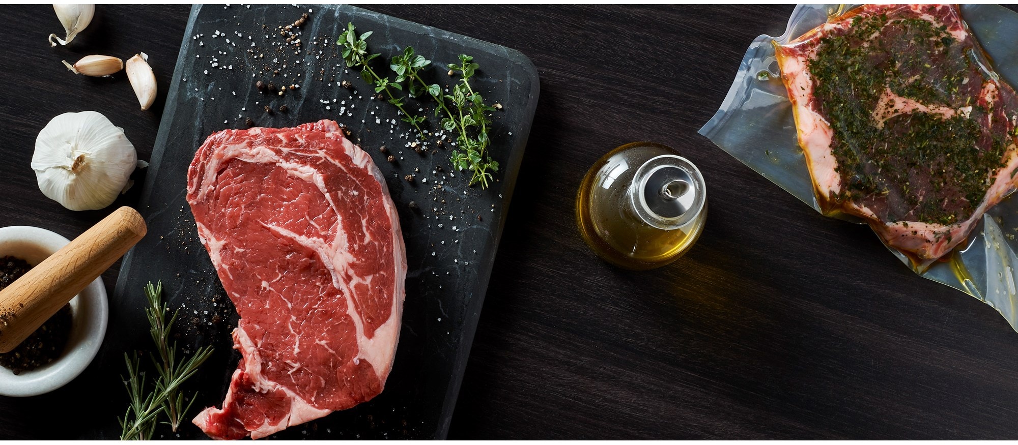 - Pour the marinade over the steaks and seal the bag on vacuum level 2.