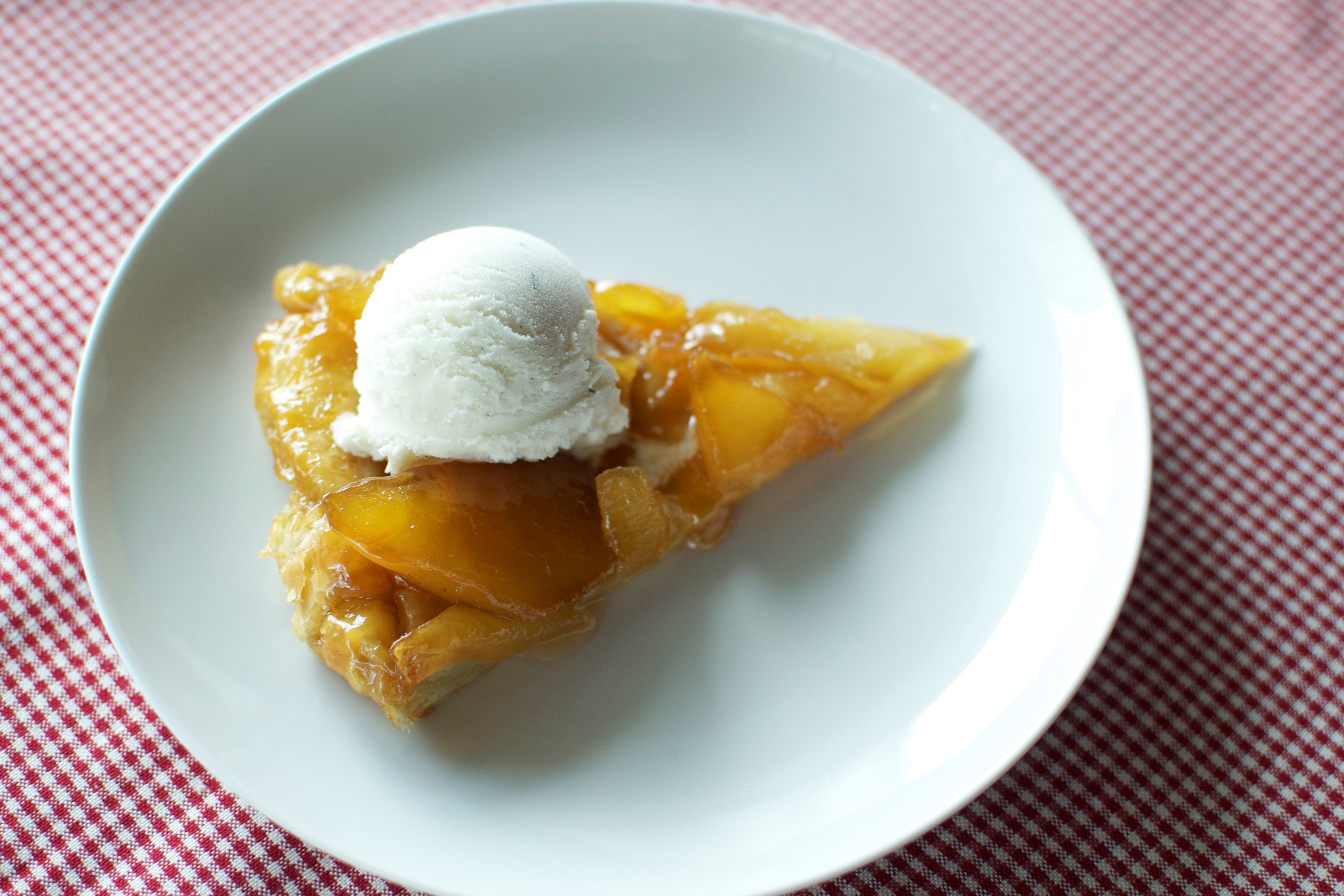 - Renverser la tarte sur le plateau, en étant très prudent avec le caramel chaud.